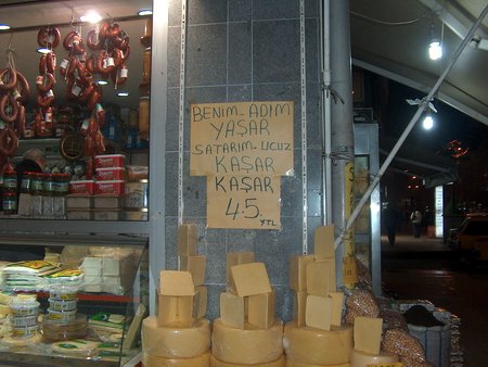 Rize Cumhuriyet caddesinde hayvansal gıdalar satan bir dükkânın duvarındaki sloganlı reklâm pankartı ilgi çekiyor. Dükkânının camına “Benim adım yaşar, satarım ucuz kaşar” yazılı pankart asarak müşterilerin dikkatini çekmeye çalışan işyeri sahibi amacına ulaşmış gözüküyor…