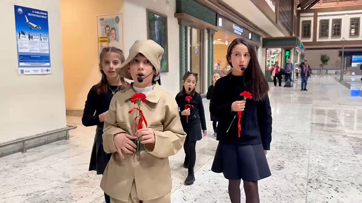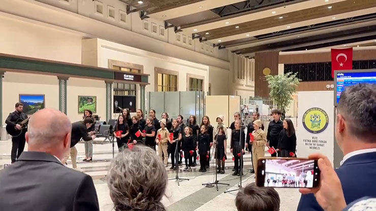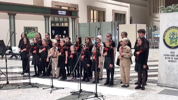 Rize Fatma-Nuri Erkan Bilim ve Sanat Merkezi öğrencileri tarafından havalimanı içinde gerçekleştirilen sunumda yolcular tatlı bir sürpriz yaşarken duygusal bir atmosfer oluştu.