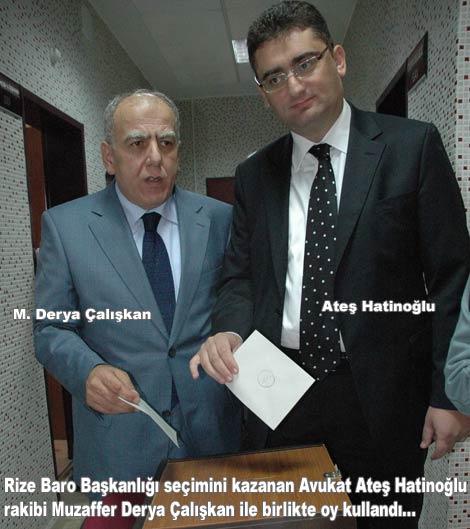 Rize Barosu'na kayıtlı 72 avukattan 65'inin oy kullandığı seçimlerde oyların 36'sını alan Ateş Hatinoğlu baro başkanlığına seçilirken, rakibi Muzaffer Derya Çalışkan ise 29 oyda kaldı.