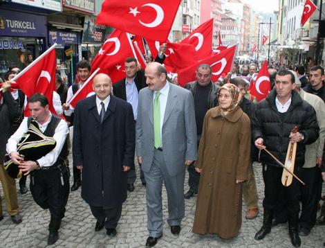 Etkinlikler için trafiğe kapatılan ve Türk bayraklarıyla süslenen Atatürk Caddesi'nde, halk oyunları ekipleri gösteri sundu. Milletvekili Çırakoğlu ve Belediye Başkanı Bakırcı da sokak lambası direğine çıkarak Türk bayrağı astı.