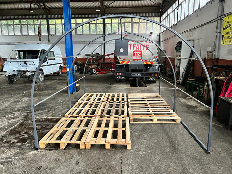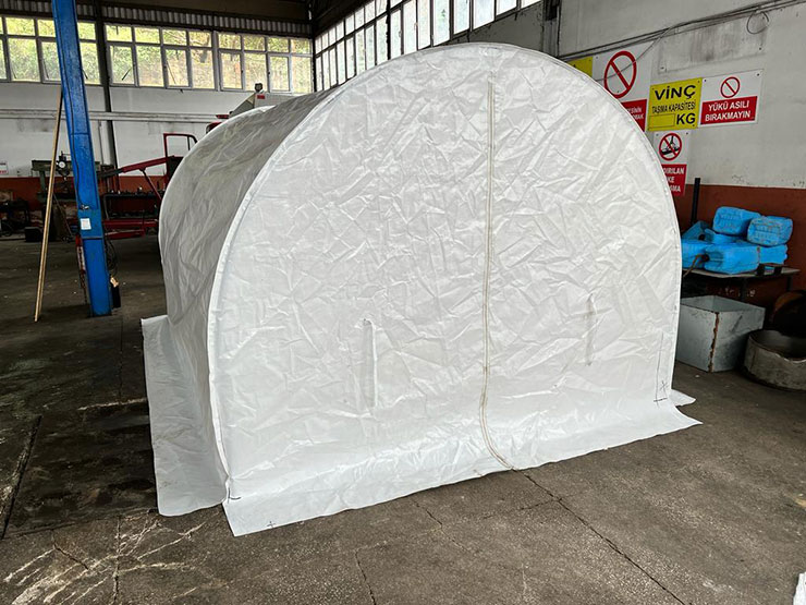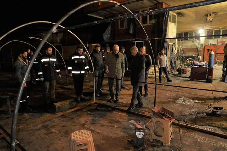 Rize Belediyesi Atölyesi’nde imalatına devam edilen Çadır Kent malzemeleri, 14 Şubat akşamı 10 adet tıra yüklenerek Rize’den Hatay’a doğru yola çıkacak.