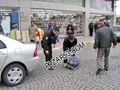 Polise, Valizim ağırdı. Belediyeye bir arkadaşımın yanına gittim. Valizleri peşime taşıyamadım, içinde elbiselerim ve özel eşyalarım var diyen Rize Meslek Yüksekokulu öğrencisi Orhan Erdem çantası açılıp incelendikten sonra Cumhuriyet Polis Merkezi'ne götürüldü.