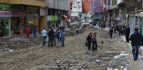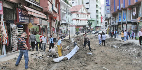 Rize Belediyesi'nin Atatürk Caddesi'nde başlattığı yol bakımı, yağmur suyu kanalı temizliği ve kaldırım çalışmasının kısa sürede tamamlanacağı bildirildi.