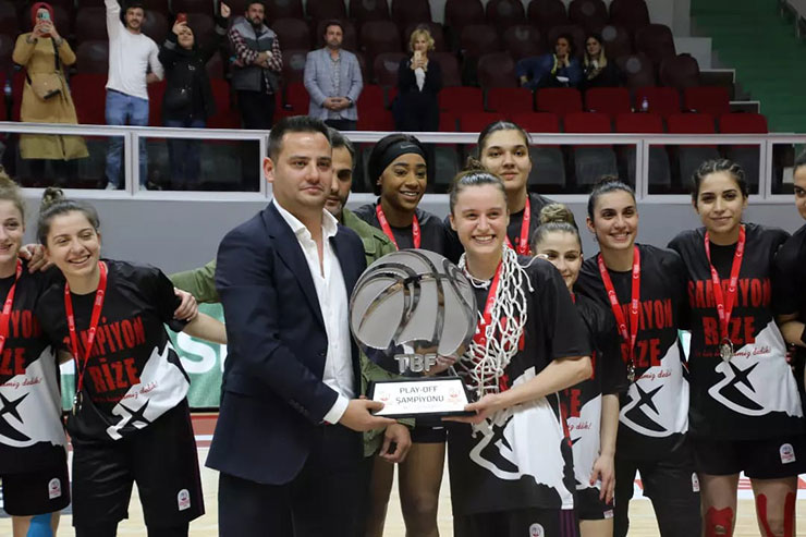 Play-off şampiyonu Rize Belediyespor ise kupasını, Türkiye Basketbol Federasyonu Kadın Liglerinden Sorumlu Yönetim Kurulu Üyesi Gökhan Dinçer'den aldı.