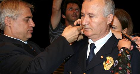 Konuşmaların ardından bir üst rütbeye terfi eden emniyet çalışanlarının rütbelerini protokol mensupları ve eşleri tarafından birlikte takıldı.