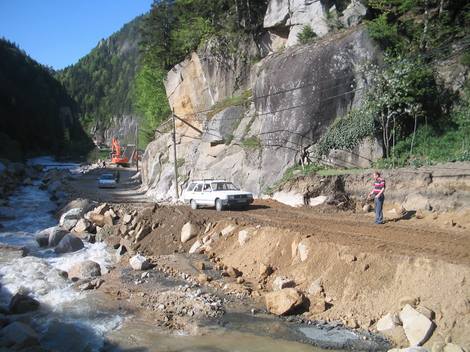 Sel sularının tahrip ettiği karayolunun 300 m.'lik kısmının tamamında 15 km. uzaktaki Gürdere Taş Ocağı'ndan sürekli taş ve kaya taşınarak dolgu yapılırken, çalışmalarda DSİ, Karayolları ve Özel İdare Köylere Hizmet Götürme Birliği'ne ait iş makineleri katıldı.