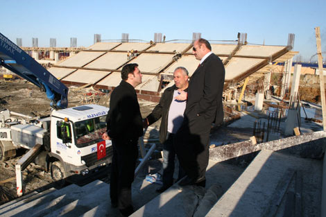 Rize İnşaat Yatırım Sanayi Ticaret A.Ş. tarafından yapımı devam eden yeni stadyumda incelemelerde bulunan Rize Belediye Başkanı Halil Bakırcı Proje Müdürü Ensar Halit Ağaoğlu’ndan bilgiler aldı.