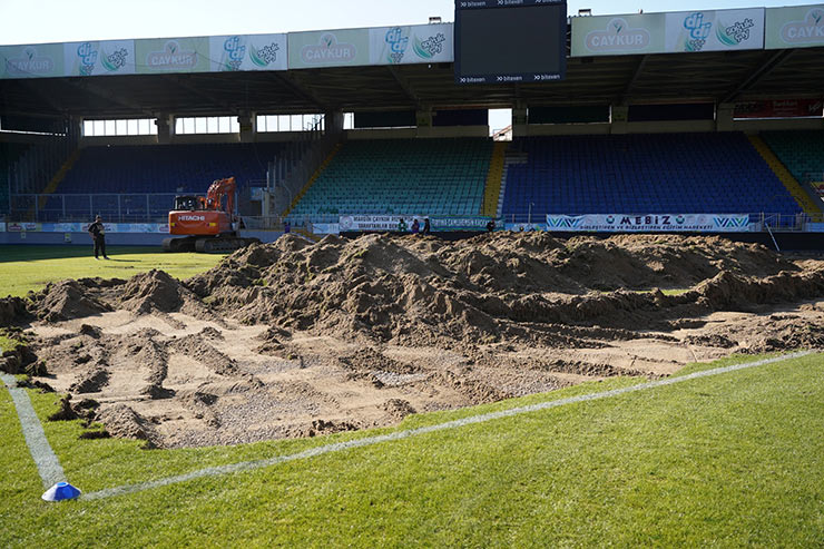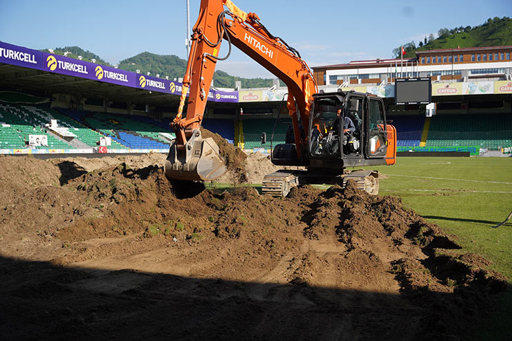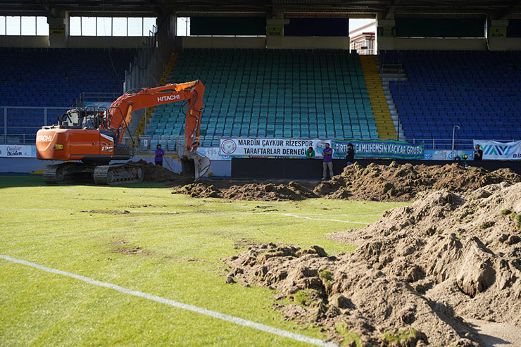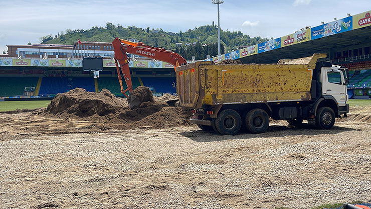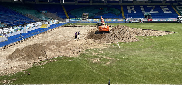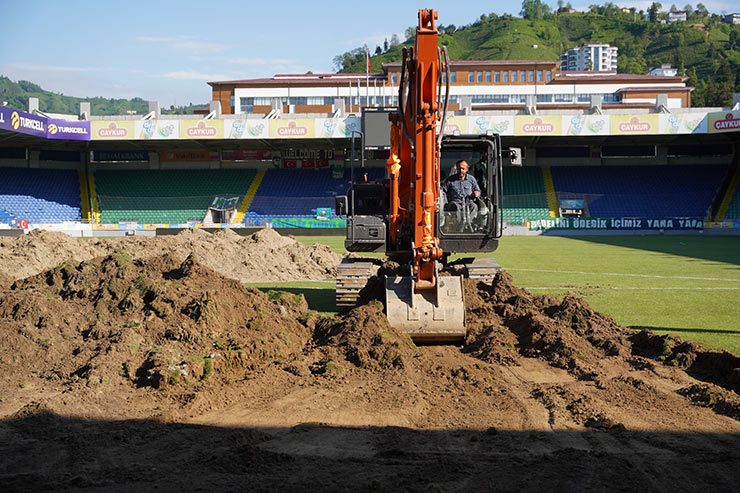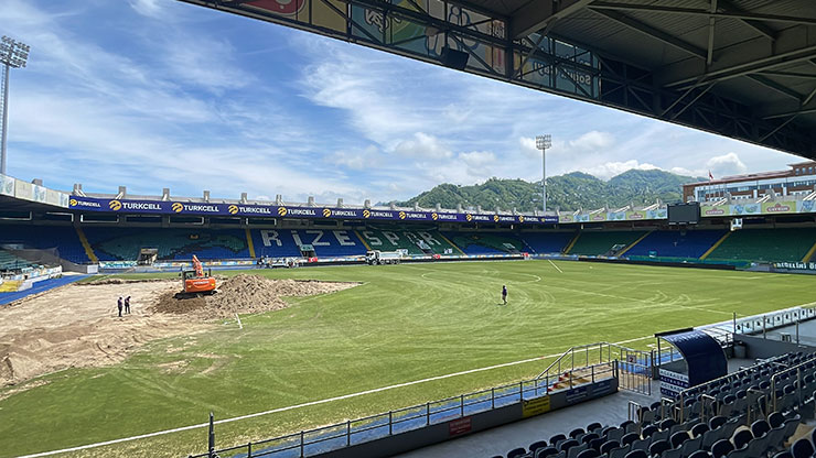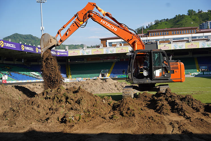 Bu sezon zeminden ötürü Türkiye Futbol Federasyonu'ndan uyarı da alan Çaykur Rizespor, zemin yenileme çalışmalarını gerçekleştirilirken, stadın zemini tamamen sökülerek yeniden yeşillendirilecek.