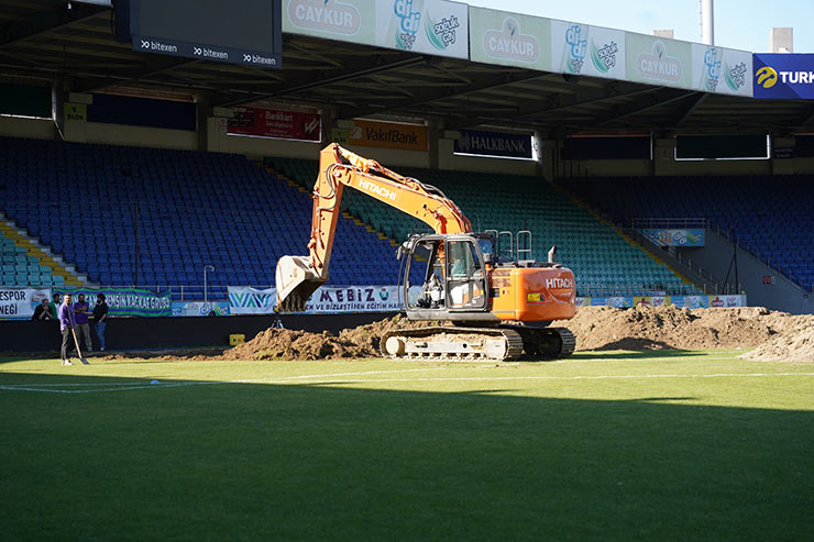 Birçok kez gündeme gelen Çaykur Rizespor’un stadının zemini yenilenmeye başlandı.