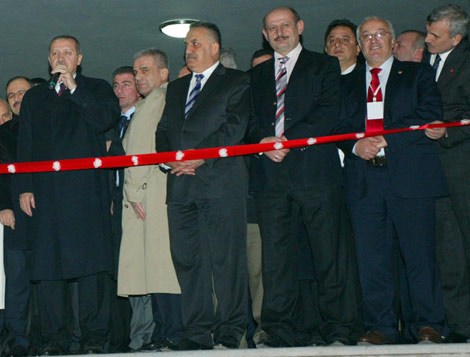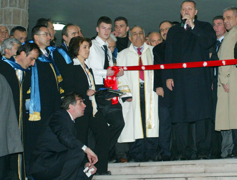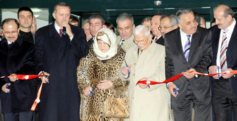 Daha sonra Devlet Bakanı Hayati Yazıcı, beraberindekiler ve hayırsever Şevket Yardımcı, eşi Sayinur Yardımcı ile açılış kurdelesinin önüne gelen Başbakan Erdoğan, Sayinur Yardımcı'nın kurdeleyi kestiğini görünce, "Sayinur annemiz bizi bekleyemedi" diyerek gülümsedi. Erdoğan, daha sonra Tıp Fakültesi binasını gezdi.