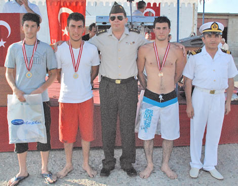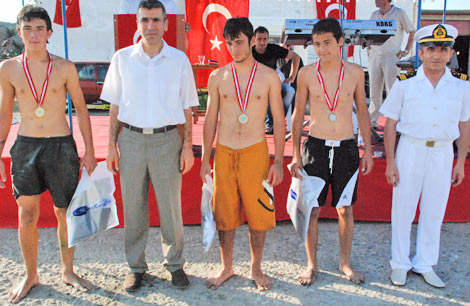 Daha sonra küçükler ve büyükler kategorisinde yüzme ve yağlı direkten bayrak alma yarışmaları yapıldı. 50 metre küçüklerde Göksel Zaman, 100 metre büyüklerde ise Emrah Ortayazıcı birinci oldu. Bayrak alma yarışını da Dursun İlker kazandı.