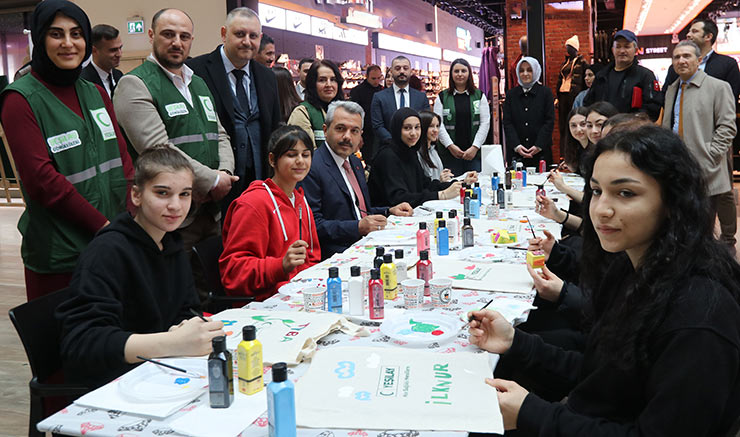 Baydaş ve beraberindekiler piyano ve keman dinletisinin ardından sergiyi gezerek, 8 Mart Dünya Kadınlar Günü için yapılan “Çantanı Kendin Tasarla” etkinliğine katıldı, Yeşilay çantası üzerine gençler ile birlikte boyama yaptı.