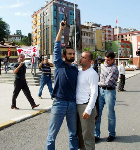 Rize'de, Şırnak'taki terör saldırılarını telin için düzenlenen protesto gösterisinde bir genç belinden silahını çıkarıp 15 el havaya ateş açtı.