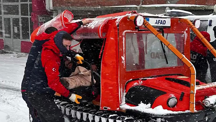 Rize'de rahatsızlanan 3 günlük ikizlerin bulunduğu bölgeye yoğun kar yağışı nedeniyle sağlık ekipleri çıkamayınca, AFAD ekipleri tarafından bebekler alınarak sağlık ekiplerine teslim edildi.