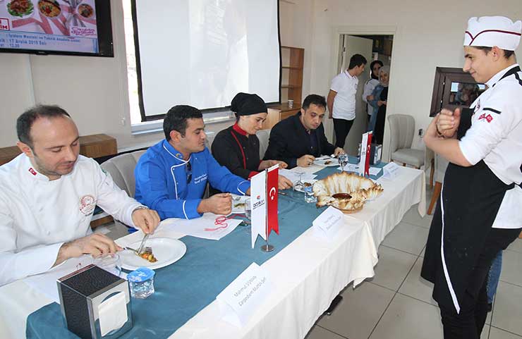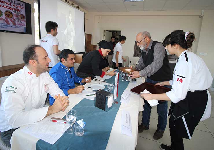Daha sonra servis edilen yemeklerin 4 jüri üyesi tarafından tatlarına bakıldı.