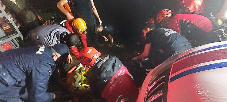 Rize'de uçuruma yuvarlanan araçtaki yaralılara AFAD müdahale etti