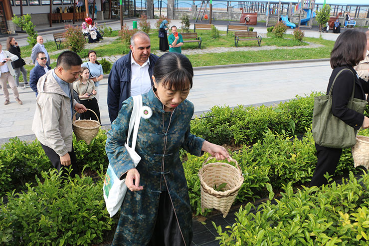 Çin'den Rize'ye gelen akademisyenler çay bahçesine girerek elleriyle çay topladı.
