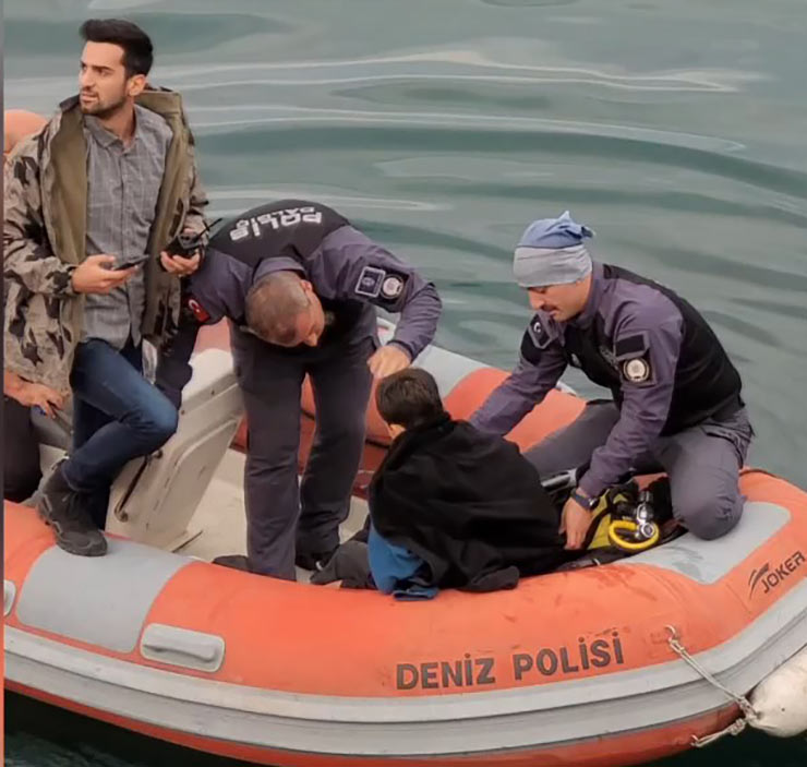Çevredekilerin ihbarı üzerine bölgeye sevk edilen deniz polisi ekipleri, çocuğu sudan çıkardı.