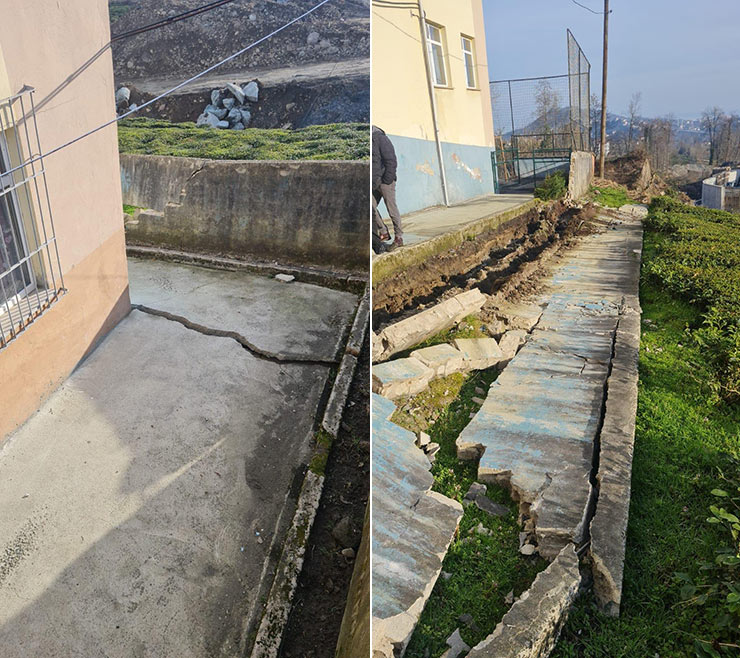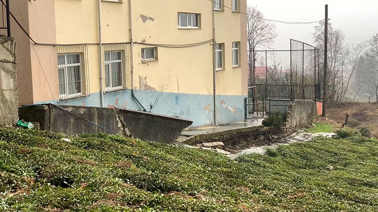 Rize'de istinat duvarı yapımı nedeniyle ilkokulun zemininde kaymalar meydana geldi