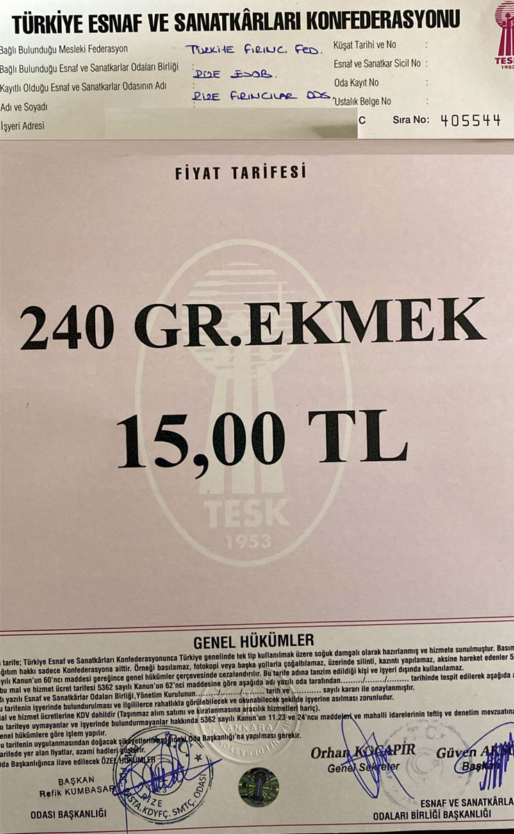 Rize'de 250 gramı 12,5 TL'den satılan ekmeğin, 240 gramı 15 TL'den satılmaya başladı