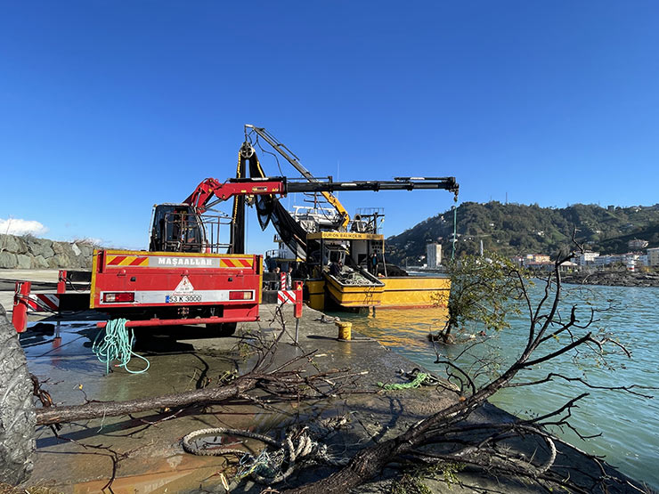 Rize'de fırtınada denize sürüklenen kamyonet vinç yardımıyla çıkartıldı