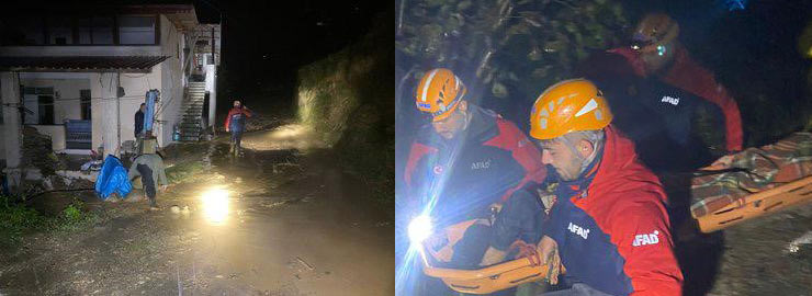 Rize'de günlerdir süren şiddetli sağanak yağışlar hayatı olumsuz etiketlemeye devam devam ediyor. Rize'nin Ardeşen ilçesine bağlı Hoşdere köyünde heyelan riski gerekçesiyle 1 ev tedbir amaçlı tahliye edildi. Konutta ikamet eden, aralarında yaşlı ve yürümekte zorluk çeken bir kişinin de bulunduğu 5 kişilik aile, AFAD koordinasyonunda Jandarma, JAK ve AKUT ekiplerince hızlı ve güvenli bir şekilde evden çıkartıldı.