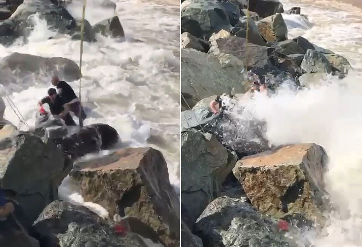 Bir süre suda sürüklenen kurbanlık, İyidere Lojistik Merkezi için yapımı devam eden dolgu alanı önündeki kayalıklarda sıkıştı. Hayvanı bulunduğu yerden çıkaramayan sahipleri, dolgu çalışmalarını yürüten şirket personelinden yardım istendi.