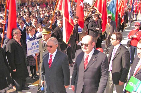 Rize belediyesi folklor ekibinin Hepimiz Mehmetçiğiz, şehitler ölmez vatan bölünmez pankartı büyük alkış aldı. Folklor gösterilerinin ardından geçit töreniyle Cumhuriyet alanındaki kutlamalar sona erdi.