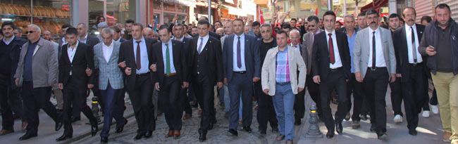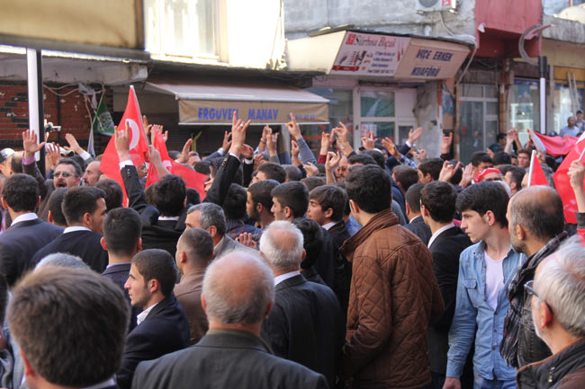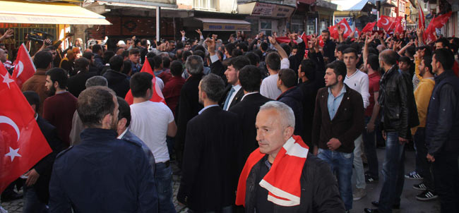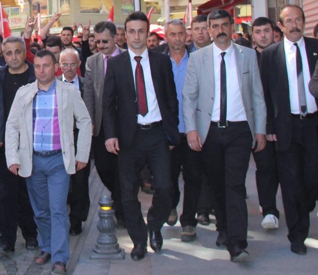 Binlerce kişinin katıldığı yürüyüşte Abdullah Öcalan aleyhine sloganlar atıldı. ‘Alparslan Türkeş’in askerleriyiz’ şeklinde sloganlar atan kalabalık grup, HDP seçim bürosu önünden geçerken, büronun bulunduğu yerden bir slogan gelmesi üzerine grup içerisindeki bazı ülkücüler seçim ofisine saldırmak istedi.