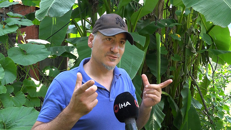 Yaklaşık 2 yıl önce diktiği muz ağaçları metrelerce uzadı. Bu yıl meyve de veren muz ağacına gözü gibi bakan Yılmaz, her gün bakımlarını ihmal etmiyor. Özellikle Rize iklimine müsait olmayan muzların zarar görmesini istemeyen Yılmaz, meyveleri iklim şartlarından korusun diye poşete bile sardı.