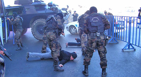 Olay yeri incelemesinin ardından Özel Harekat binasının çatısına Türk Bayrağı asılarak tatbikat başarı ile tamamlandı.