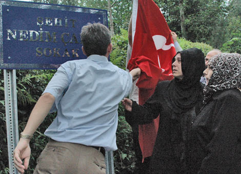 ABD konsolosluğuna düzenlenen terörist saldırıda şehit düşen Rizeli Polis Memuru Nedim Çalık'ın ismi, evinin önündeki sokağa verildi.
