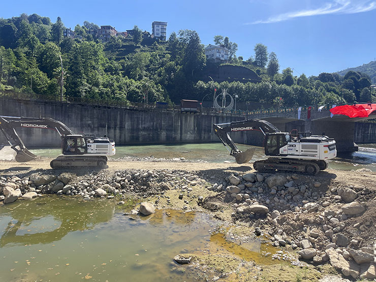Rize'de sel ve taşkın risklerini azaltması için kullanıma gönderilen 8 iş makinesi teslim alınarak dere ıslahlarına başladı.