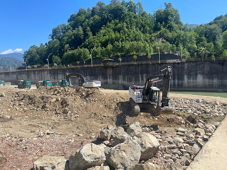 Rize'de sel risklerini azaltmada kullanılacak olan 8 iş makinesi dere ıslahlarına başladı