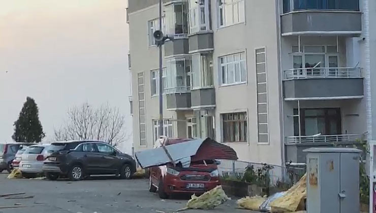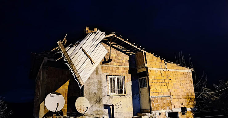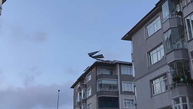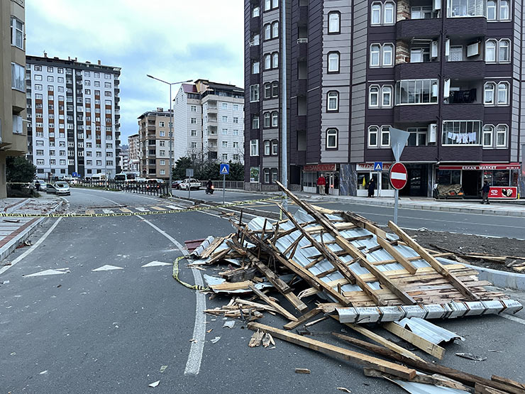 Pazar ilçesinde de fırtına nedeniyle bazı evlerin çatılarından kopan parçalar yola düştü.