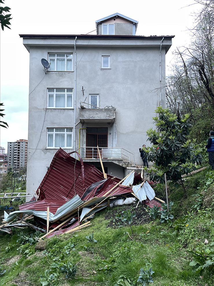 Rize İl merkezi ve ilçelerde etkili olan şiddetli fırtına dolayısıyla bazı evlerin çatısı uçtu.