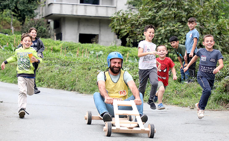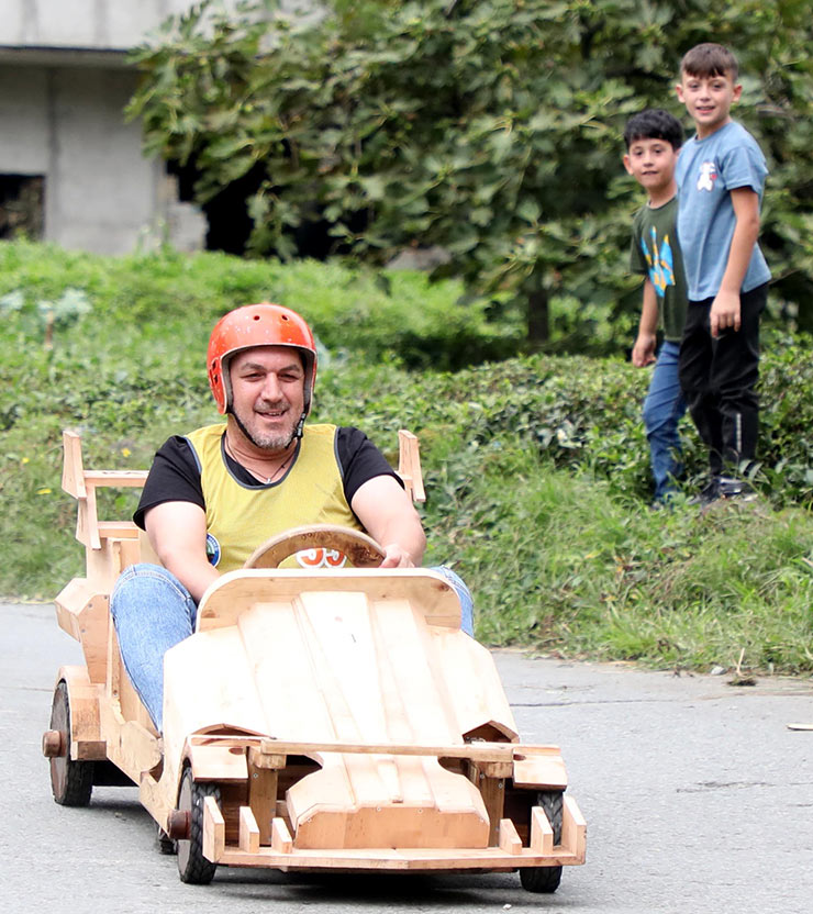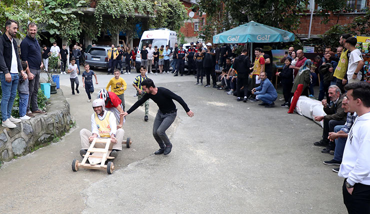 Rize'nin Çamlıhemşin ilçesine bağlı Dikkaya köyünde "Laz Ralli Tahta Araba Şenliği"nin 13'üncüsü gerçekleştirildi.