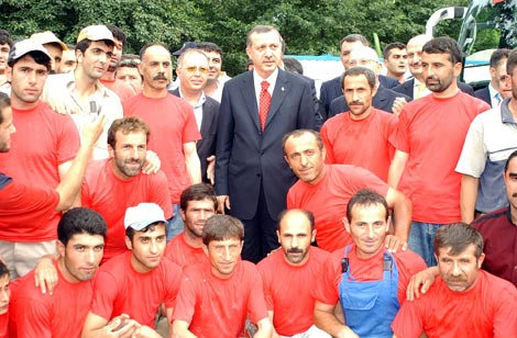 Çocuklara eşi Emine Erdoğan ile birlikte oyuncak dağıtan Başbakan Erdoğan, Güneysu Anadolu Öğretmen Lisesi'nin girişinde kendisi için kesilmek üzere bekletilen 2 koyunun kesilmeyerek hayır kurumlarına verilmesini istedi. Okul inşaatında çalışan işçilerle hatıra resmi çektiren Başbakan Erdoğan, Rize'ye giderken yol üzerinde otobüsünden inerek DSİ tarafından yürütülen Salarha Deresi ıslah çalışmalarını inceledi.