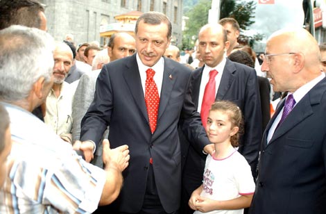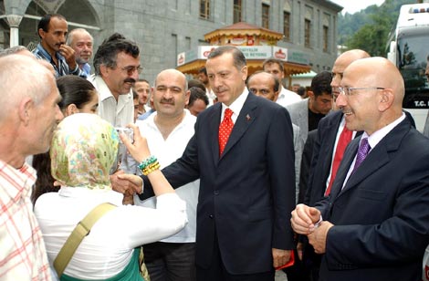 Güneysu İlçesi Merkez Mahallesi'ndeki evinde geceyi geçiren Başbakan Erdoğan, her yıl geleneksel olarak düzenlenen 6 yıldır aralıksız katıldığı Handüzü Yayla Şenliği'ne bu yıl hava muhalefeti nedeniyle katılamadı. Helikopterle öğle saatlerinde yaylaya gitmeyi planlayan Başbakan Erdoğan, yaylada havanın sisli olması nedeniyle gezisini iptal etti. Başbakan Erdoğan, beraberinde eşi Emine Erdoğan, Bayındırlık ve İskan Bakanı Faruk Nafız Özak, AK Parti Rize milletvekillerinden Ali Bayramoğlu ile birlikte ilçe merkezinde vatandaşlarla görüştü.