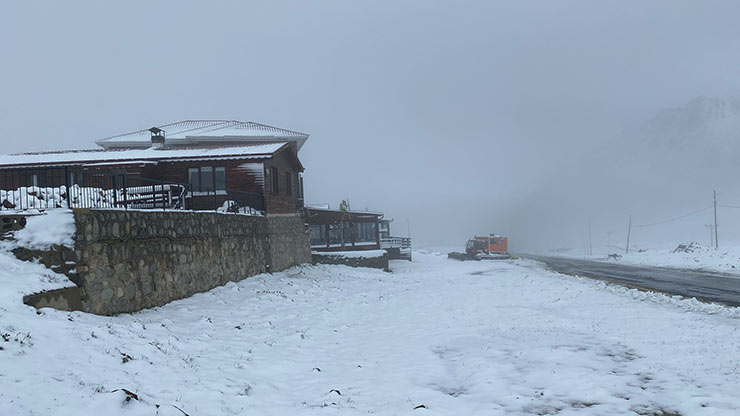 Rize’nin yüksek kesimlerinde yaşayan yaylacılar yaz mevsiminin ortasında güne kar yağışı ile uyandı.