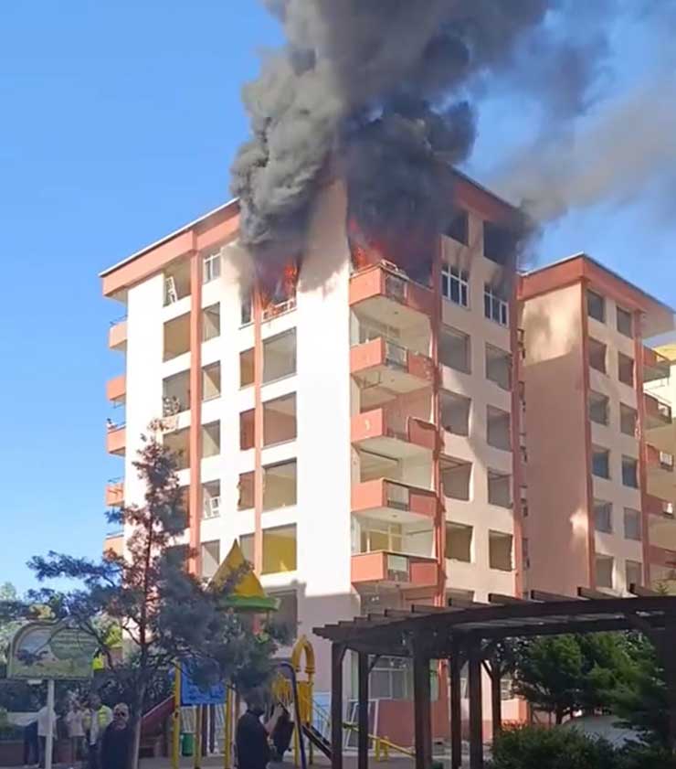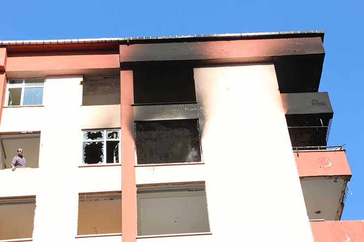 Evin camlarından dışarıya çıkan alevleri gören çevredekiler, 112 Acil Çağrı Merkezi'ne ihbarda bulundu.