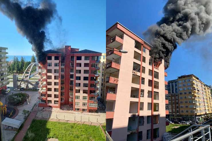Rize'de daha önce yıkılma tehlikesi nedeniyle boşaltılan binanın 8. katında yangın çıktı.