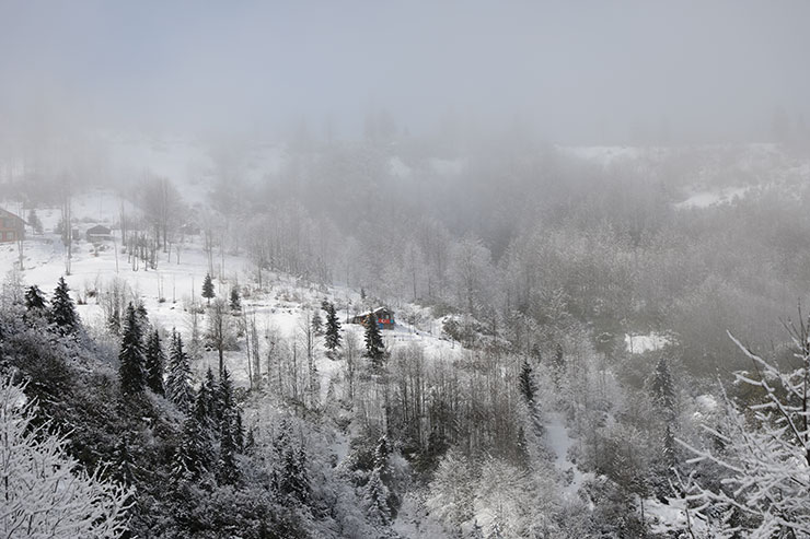 Rize'nin yüksek kesimlerinde kar etkili oldu.