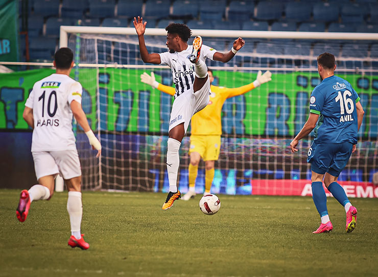 76. dakikada topla buluşan İbrahim Olawoyin’in ceza sahası dışından yaptığı sert vuruşunda top direkten döndü.