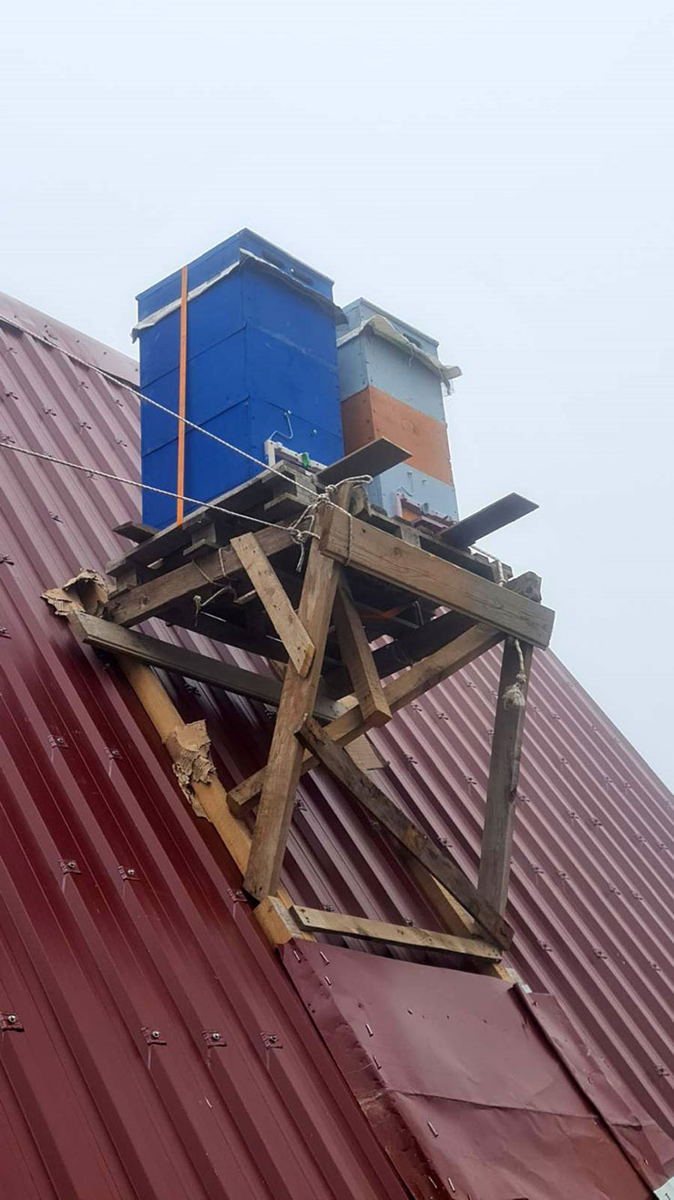 Rizeli arıcı peteklerini ayılardan korumak için kaygan saclı çatıya yerleştirdi