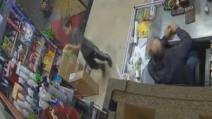 Olay anına ait görüntüler, marketin güvenlik kamerasınca kaydedildi. Çeşitli sosyal medya platformlarında da yayınlanan görüntüler ilgi gördü.