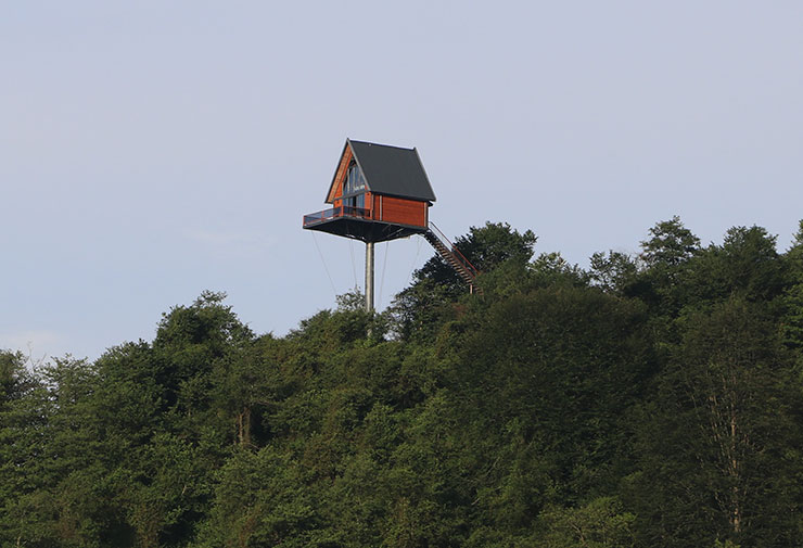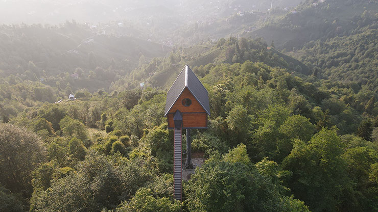 RİZE (İHA) - Rize'de yaşayan Cihat Çelik, yaklaşık 9 yıl önce bir arkadaşından 12 metrelik bir direk satın aldı. Aldığı bu direk ile neler yapabileceği hakkında kafa yoran Çelik, en sonunda direğin üstünde bir ev yapmaya karar verdi.