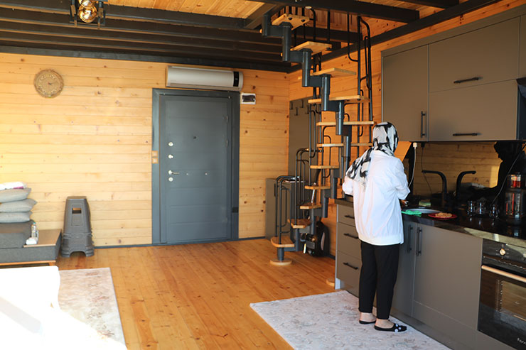 Rizeli kaporta ustası Cihat Çelik, arkadaşından satın aldığı 12 metrelik direğin üzerine 2+1 ev yaptı.