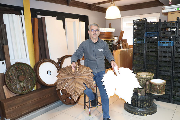 Strafordan hazırlanan kütüklerin gerçeğinden çok daha hafif olduğu için daha kullanışlı olduğuna dikkat çeken Sarı, "Bu malzeme her türlü kullanılabilir. Hatta bir binanın dış cephesini epoksi kaplayıp bunu kullanabiliriz. Eskitmenin sonu yok. Doğa öyle bir hayal gücü vermiş bize ki her şey var. Bunu hayatımızı yansıtsak hem mutlu oluruz hem sağlıklı oluruz. Çok güzel şeyler. Tavanda kullanırız düşünün 200 kiloluk kütük yerine 3 kiloluk strafor" ifadelerini kullandı.