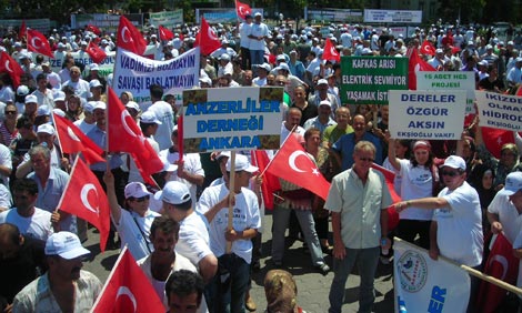 Ellerinde Türk bayrakları ve giydikleri "Vadime Dokunmayın" yazılı tişörtlerle meydanda toplanan Karadenizliler, hep birlikte termik santraller için 'hayır' dedi.